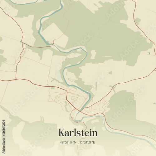 © Rezona, Fototapeta premium Vintage map of Karlstein, Austria.