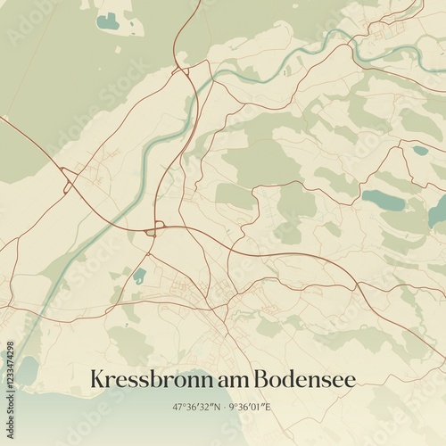 © Rezona, Fototapeta premium Vintage map of Kressbronn am Bodensee, Germany.