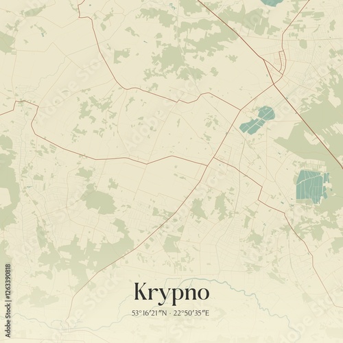 © Rezona, Obraz premium Vintage map of Krypno, Poland.