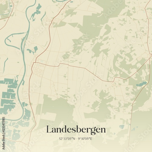 © Rezona, Fototapeta premium Vintage map of Landesbergen, Germany.