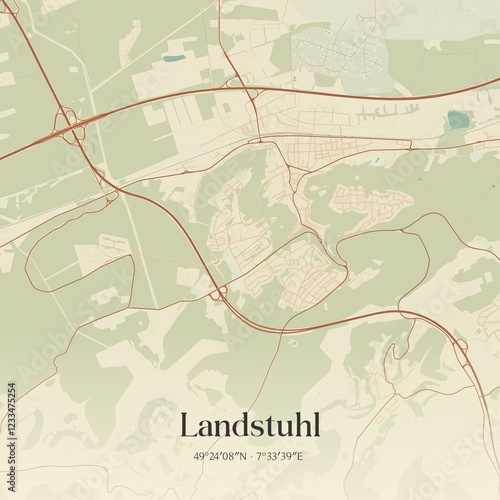 © Rezona, Obraz premium Vintage map of Landstuhl, Germany.