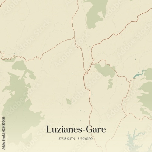 © Rezona, Fototapeta premium Vintage map of Luzianes-Gare, Portugal.