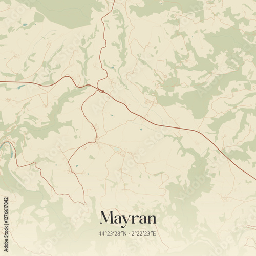 © Rezona, Obraz premium Vintage map of Mayran, France.