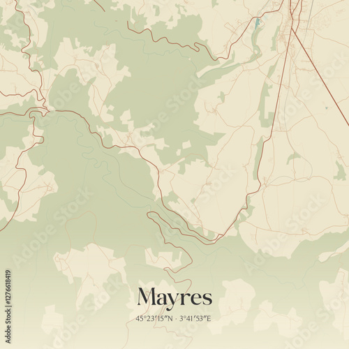 © Rezona, Obraz premium Vintage map of Mayres, France.