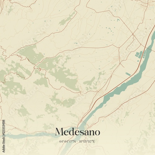 © Rezona, Obraz premium Vintage map of Medesano, Italy.