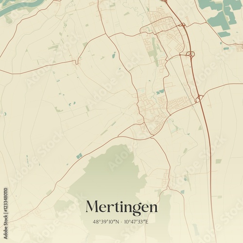 © Rezona, Fototapeta premium Vintage map of Mertingen, Germany.