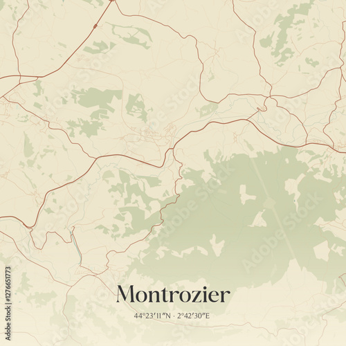© Rezona, Fototapeta premium Vintage map of Montrozier, France.