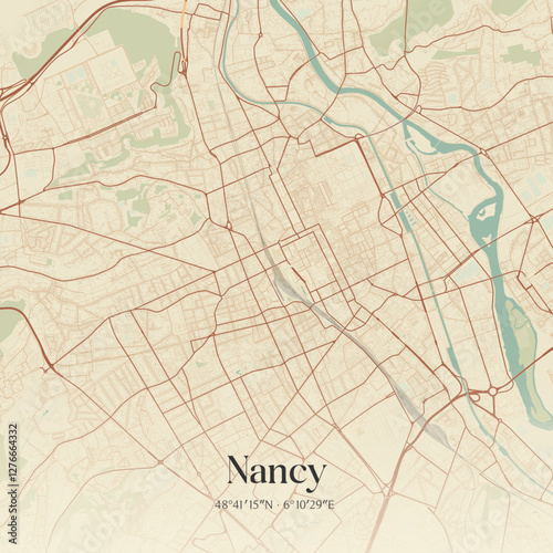 © Rezona, Obraz premium Vintage map of Nancy, France.