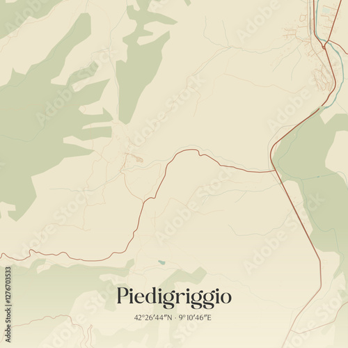 Obraz premium Vintage map of Piedigriggio, France.