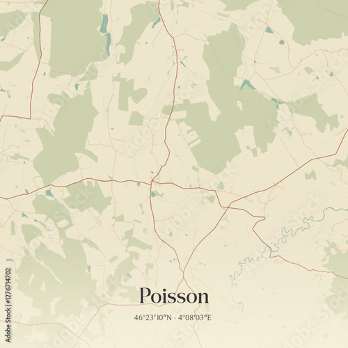 © Rezona, Obraz premium Vintage map of Poisson, France.