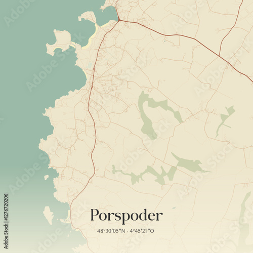 Obraz premium Vintage map of Porspoder, France.