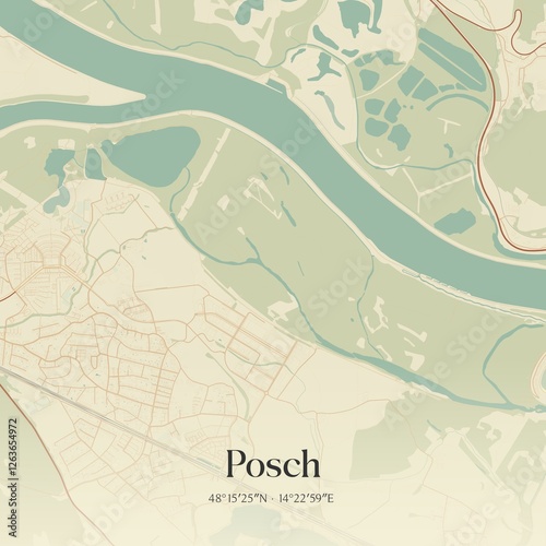 © Rezona, Fototapeta premium Vintage map of Posch, Austria.