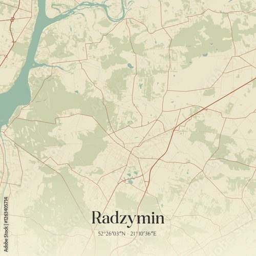 © Rezona, Obraz premium Vintage map of Radzymin, Poland.