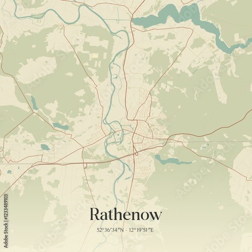 © Rezona, Fototapeta premium Vintage map of Rathenow, Germany.