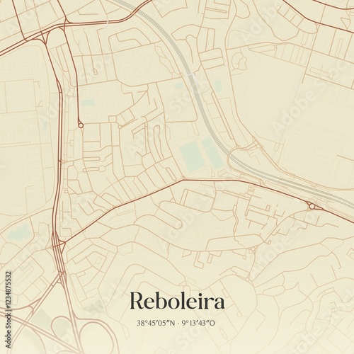 © Rezona, Obraz premium Vintage map of Reboleira, Portugal.