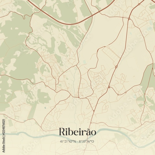 © Rezona, Obraz premium Vintage map of Ribeirão, Portugal.