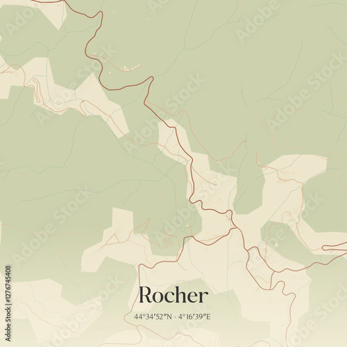 © Rezona, Obraz premium Vintage map of Rocher, France.