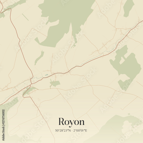 © Rezona, Obraz premium Vintage map of Royon, France.