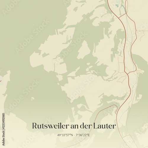 © Rezona, Obraz premium Vintage map of Rutsweiler an der Lauter, Germany.