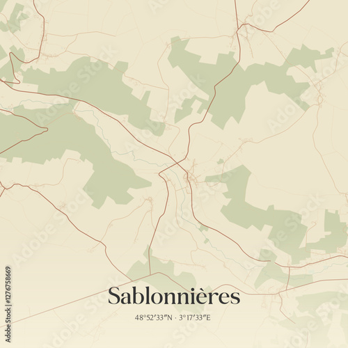 © Rezona, Fototapeta premium Vintage map of Sablonnières, France.