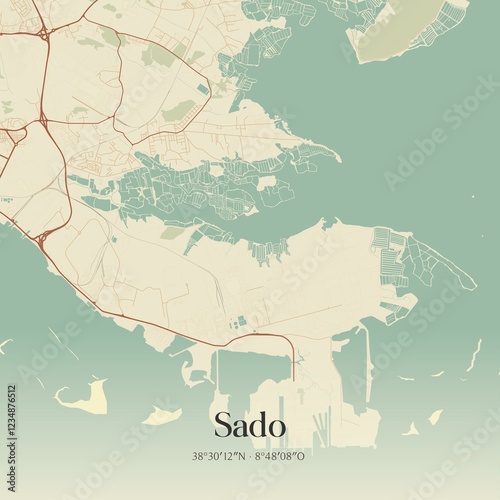 © Rezona, Fototapeta premium Vintage map of Sado, Portugal.