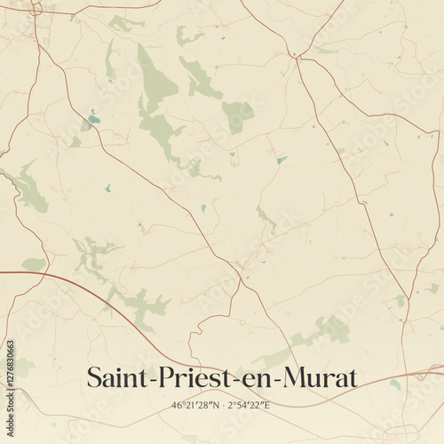 Obraz premium Vintage map of Saint-Priest-en-Murat, France.