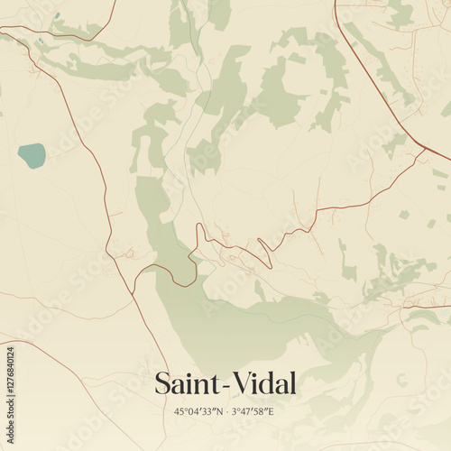 © Rezona, Obraz premium Vintage map of Saint-Vidal, France.