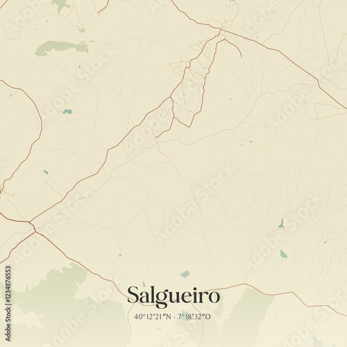 © Rezona, Fototapeta premium Vintage map of Salgueiro, Portugal.