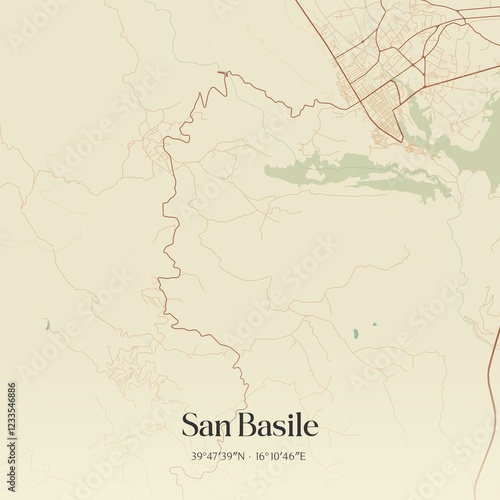 © Rezona, Fototapeta premium Vintage map of San Basile, Italy.