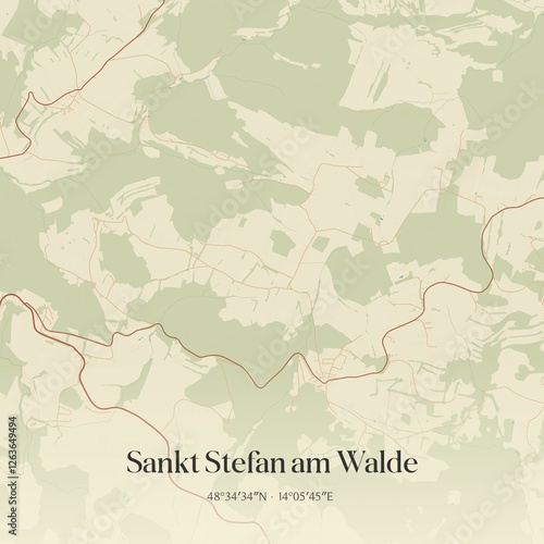 © Rezona, Obraz premium Vintage map of Sankt Stefan am Walde, Austria.