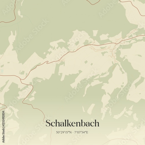 © Rezona, Obraz premium Vintage map of Schalkenbach, Germany.
