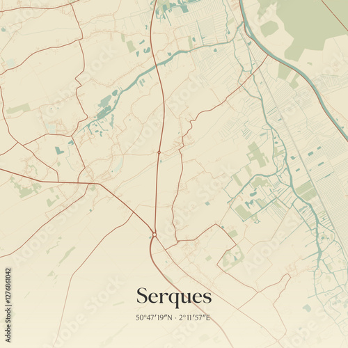 © Rezona, Obraz premium Vintage map of Serques, France.