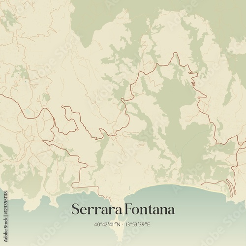 © Rezona, Obraz premium Vintage map of Serrara Fontana, Italy.