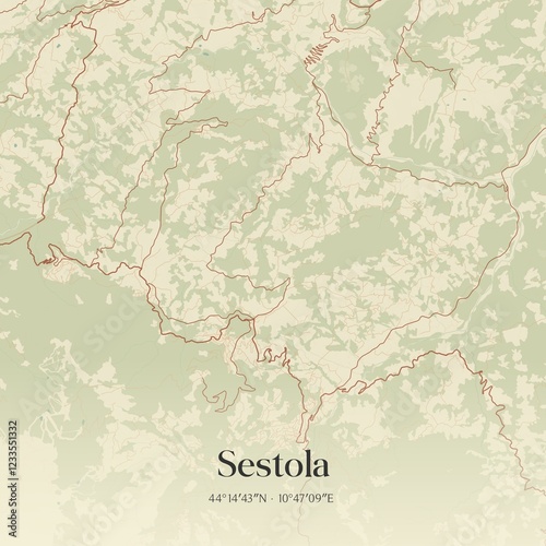 © Rezona, Fototapeta premium Vintage map of Sestola, Italy.