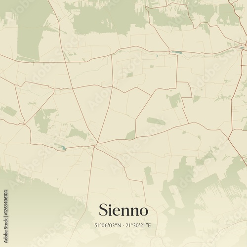 © Rezona, Fototapeta premium Vintage map of Sienno, Poland.