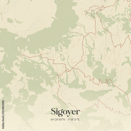 © Rezona, Obraz premium Vintage map of Sigoyer, France.