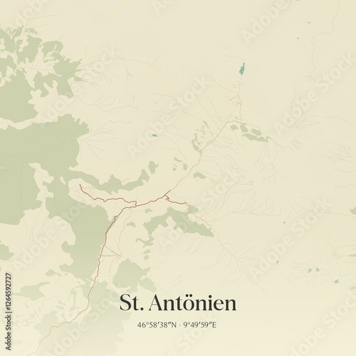 © Rezona, Fototapeta premium Vintage map of St. Antönien, Switzerland.