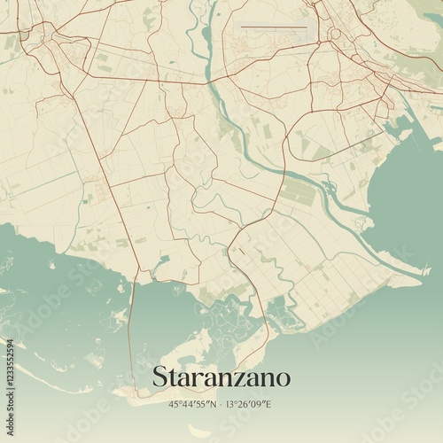 © Rezona, Obraz premium Vintage map of Staranzano, Italy.
