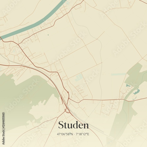 © Rezona, Fototapeta premium Vintage map of Studen, Switzerland.
