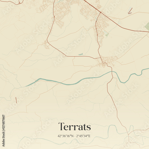 © Rezona, Obraz premium Vintage map of Terrats, France.