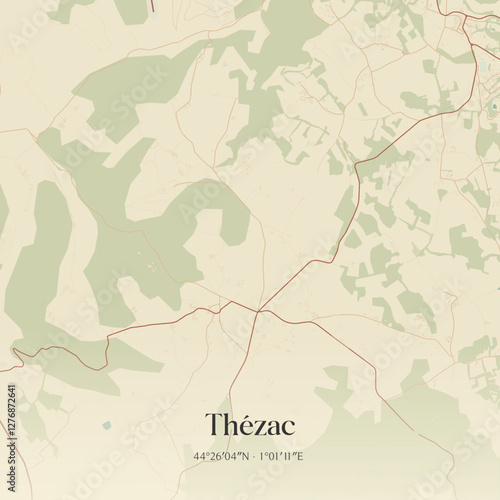 © Rezona, Obraz premium Vintage map of Thézac, France.