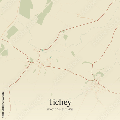 © Rezona, Obraz premium Vintage map of Tichey, France.