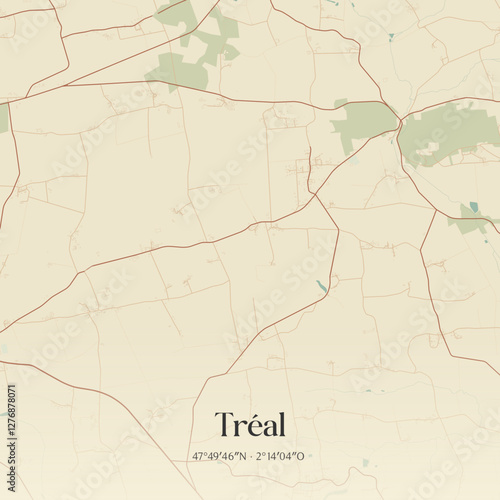© Rezona, Obraz premium Vintage map of Tréal, France.
