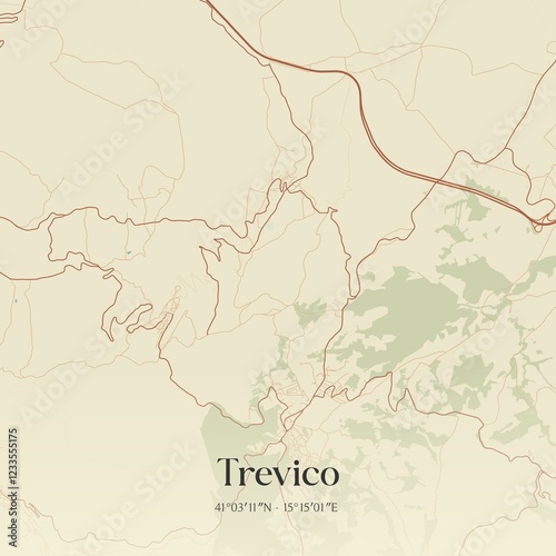 © Rezona, Obraz premium Vintage map of Trevico, Italy.