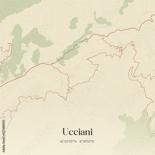 © Rezona, Obraz premium Vintage map of Ucciani, France.