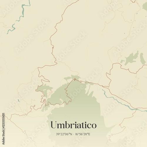 © Rezona, Obraz premium Vintage map of Umbriatico, Italy.