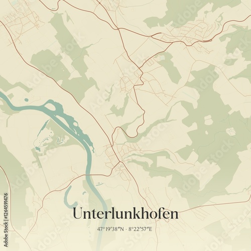 © Rezona, Fototapeta premium Vintage map of Unterlunkhofen, Switzerland.