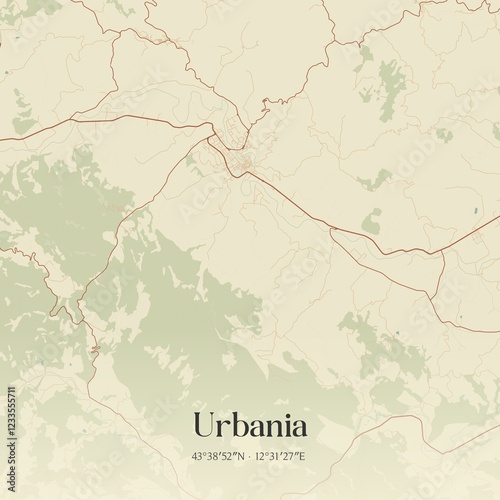 © Rezona, Obraz premium Vintage map of Urbania, Italy.