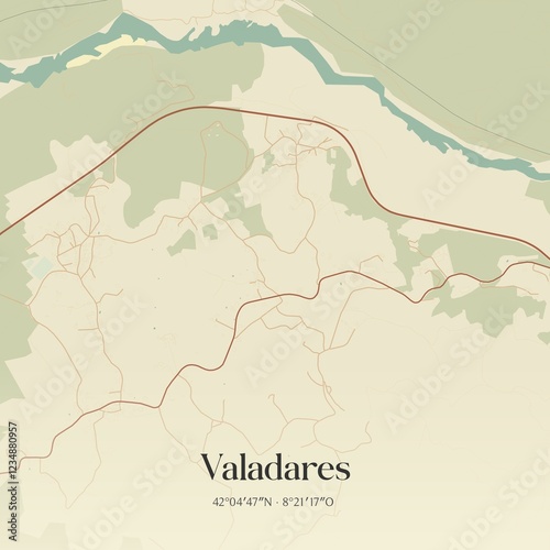 © Rezona, Obraz premium Vintage map of Valadares, Portugal.