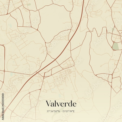 © Rezona, Fototapeta premium Vintage map of Valverde, Italy.